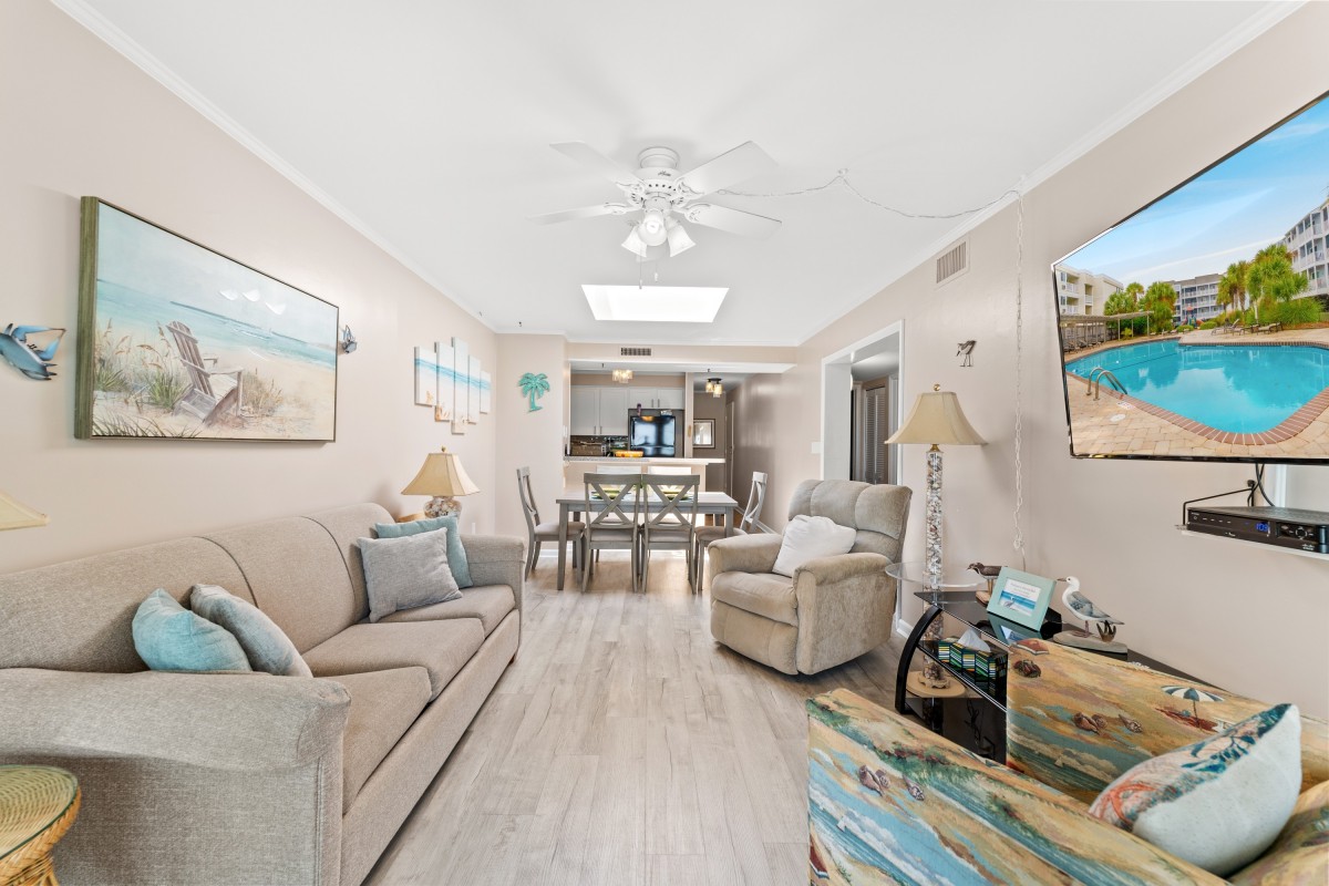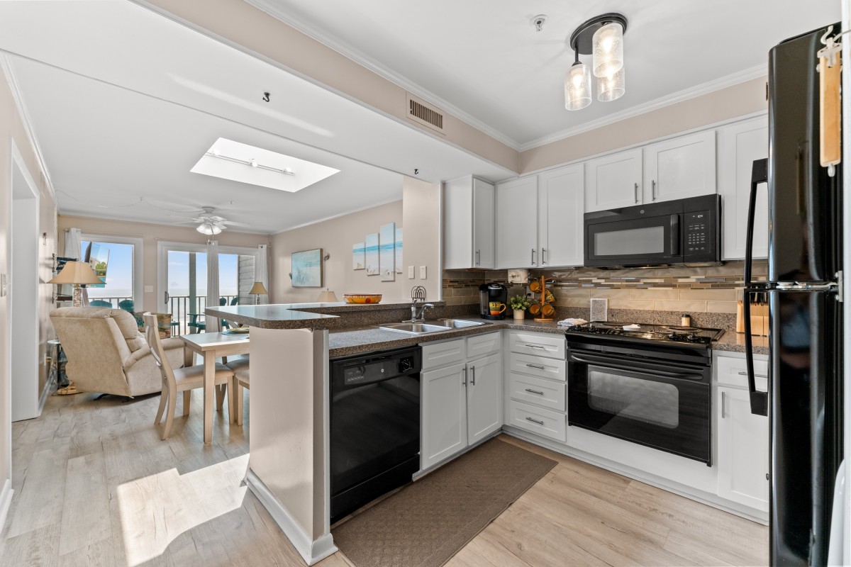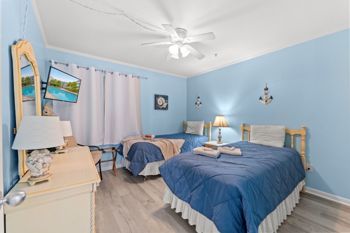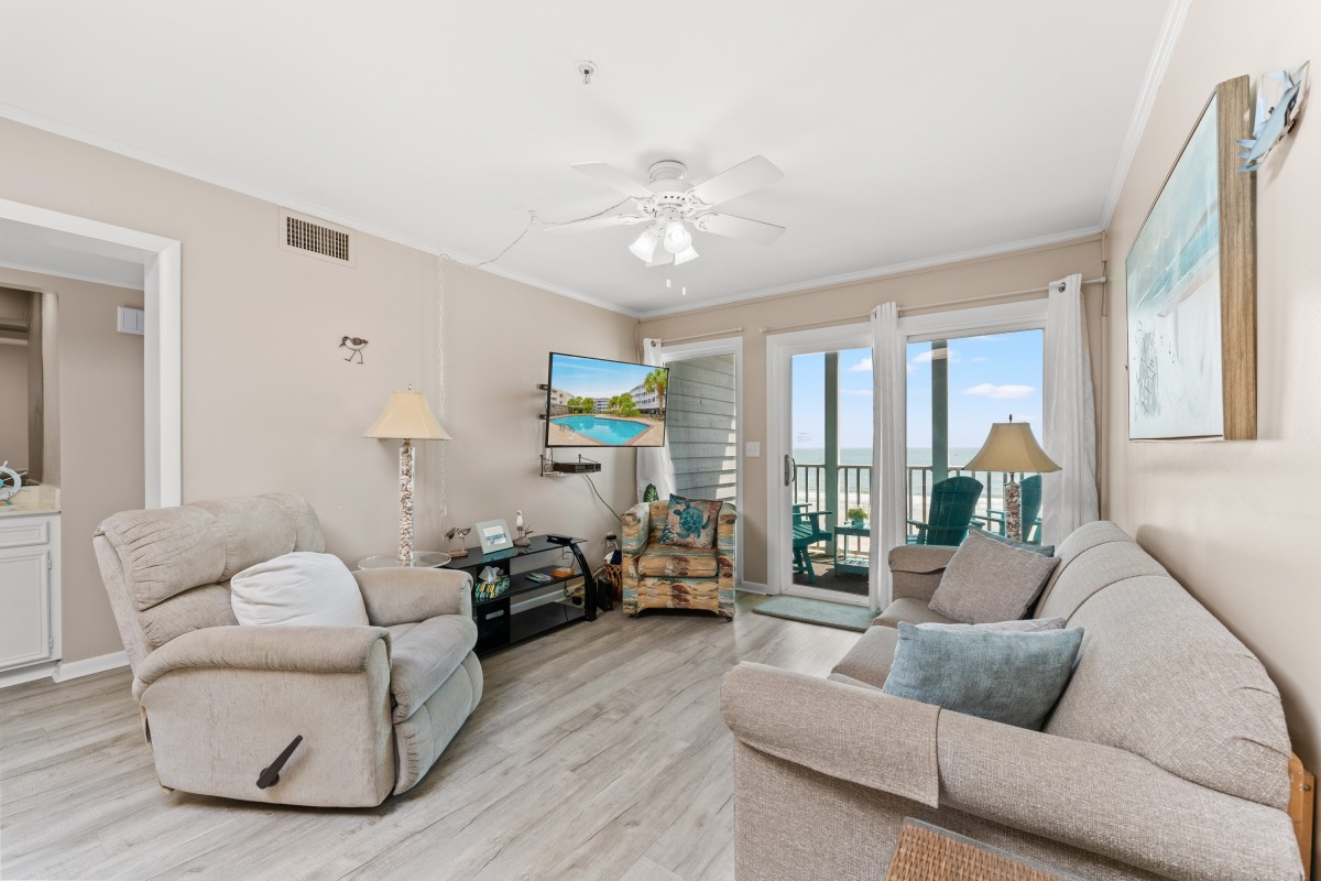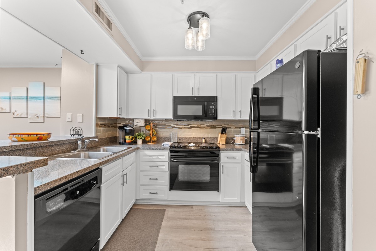 Inside Pelicans Landing Building 6 #404, you’ll find a fully equipped kitchen for preparing meals, a wet bar for entertaining, complimentary WIFI, and multiple TVs for streaming and relaxing after a day at the beach. A washer and dryer are conveniently located in the unit, making longer stays easy and comfortable.