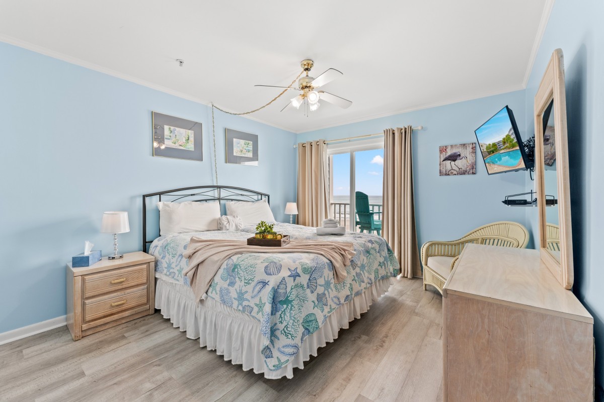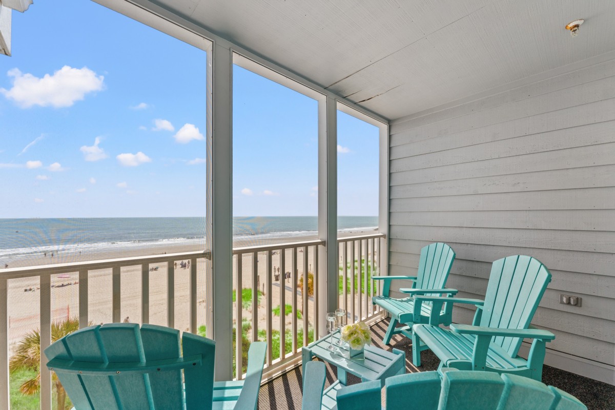 The highlight of this fourth-floor condo is the screened oceanfront balcony — the ideal spot to enjoy your morning coffee while watching the sunrise or to unwind in the evening with the sea breeze. The oceanfront master bedroom also offers beautiful views and a relaxing atmosphere for restful nights.